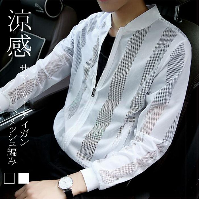 サマーカーディガン メンズ ストライプ 切り替え ライトアウター 夏 春 薄い 薄手 冷感 涼しい 日焼け対策 冷房対策