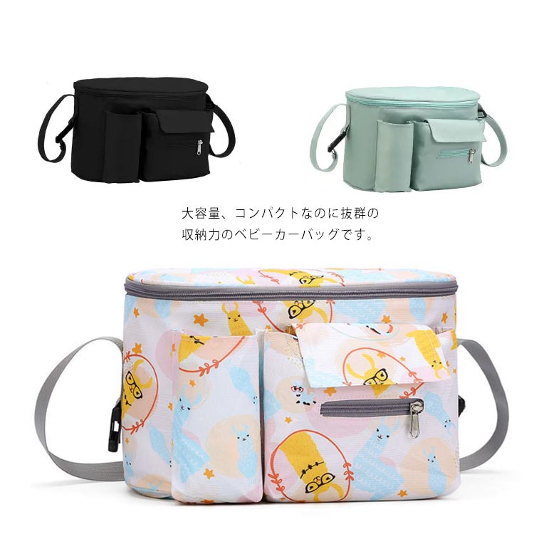 ベビーカーバッグ ドリンクホルダー 大容量 ベビーカー用バッグ バギーバッグ シンプル ベビーカー 小物入れ 収納 ポーチ フック ティッシュ対応 便利 軽量 おしゃれ 簡単 取り付け 無地 花柄