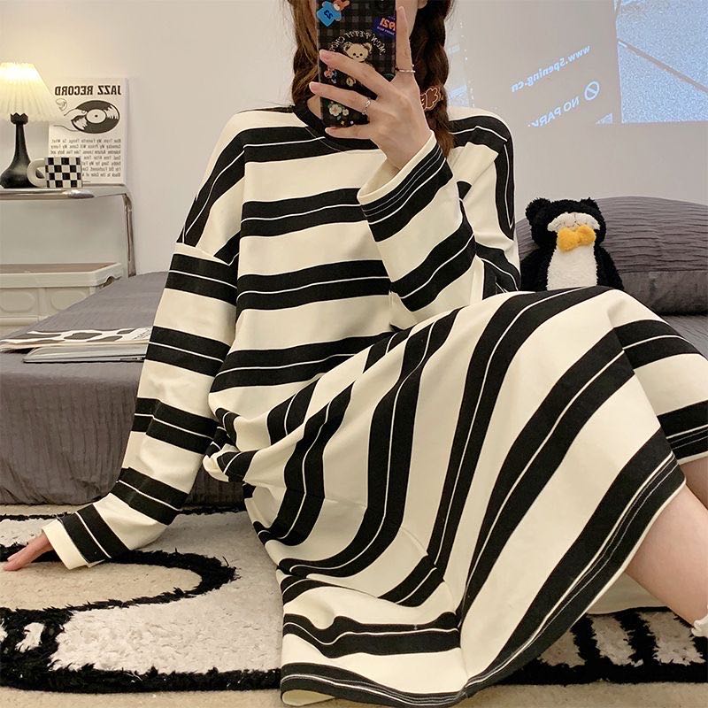 ルームウェア レディース ボーダー柄ワンピース パジャマ 春 秋インナー 下着 ナイトウェア レディース ナイトウェア ルームウェア ルームウェア ワンピース