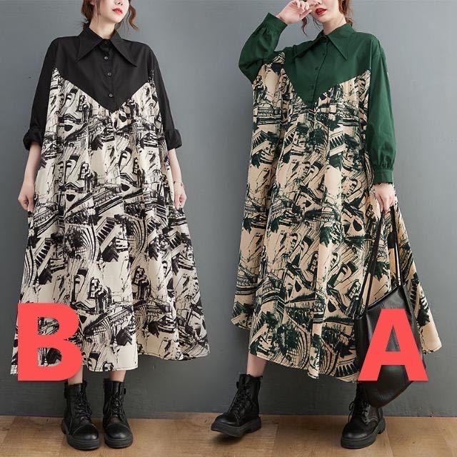 レディース ロングワンピース シャツワンピ 長袖ワンピースレディース シャツワンピース 長袖シャツ 柄ワンピース 春夏 レディース春物 春ワンピース 総柄 ゆったり 可愛い 大きいサイズ 長袖 ヒョウ