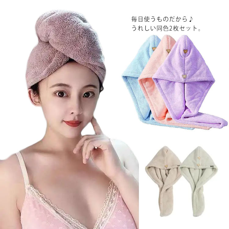 ヘア ドライ タオル 吸水速乾 タオルキャップ 2枚セット日用品雑貨 文房具 手芸 タオル ヘアドライタオル