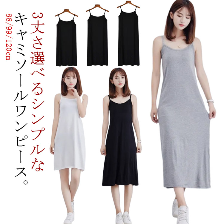 インナーワンピース キャミワンピ レディース ノースリーブワンピース3丈さ選べる ワンピース ロング丈 インナー 無地 ペチコート ストレッチ