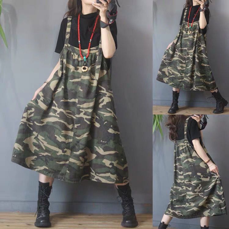 レディース ジャンパースカート ジャンスカ サマーワンピース ロングワンピース レディースワンピース 迷彩柄 カモフラ柄 夏 ロング丈 ゆったり 大きいサイズ おしゃれ 可愛い 125 フリー