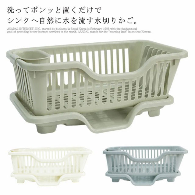 水切りかご 水切りバスケット シンク脇水切りラック 食器水切り 箸立て 水切りラック 水切りトレー 水が流れる キッチン収納 食器収納 プラスチック製 排水口付き スリム コンパクト 台所用品 ホワイ