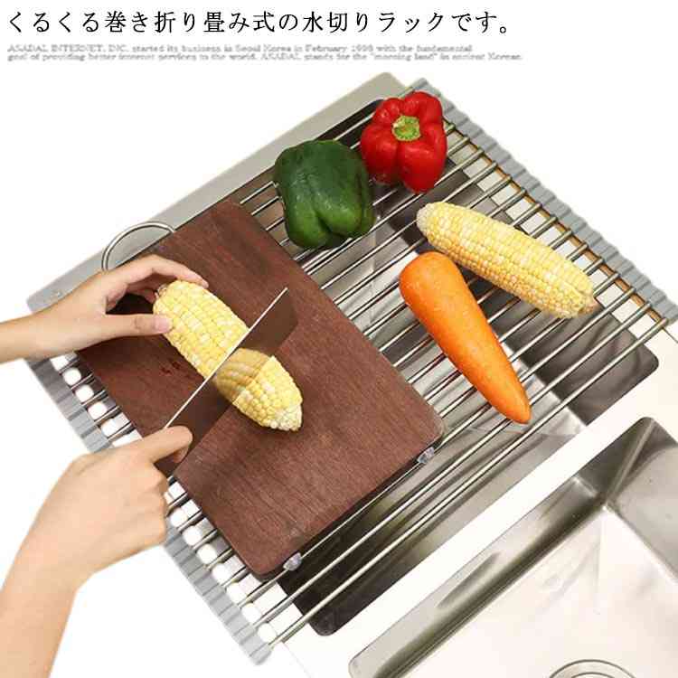 シンク 食器水切り 水切りラック 折りたたみ ステンレス製 水切りトレー シンク上 洗い物 抗菌 キッチン用品 食器 乾燥 置くだけ くるくる 巻き スリム 乾かす コンパクト 台所用品 シンプル 北