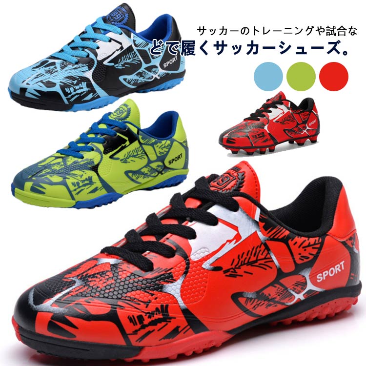 定番 サッカーシューズ キッズ 運動靴 サッカースパイク 子ども サッカー 紐 トレーニングシューズ 練習用 スパイクシューズ スポーツシューズ トレシュー シューズ ジュニア スパイク