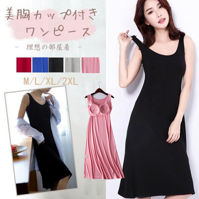 カップ付き ワンピース レディース ノースリーブ 部屋着 ロング丈 ルームウェア 部屋着 ロングワンピース ゆったり 体型カバー 春 夏 年中使える