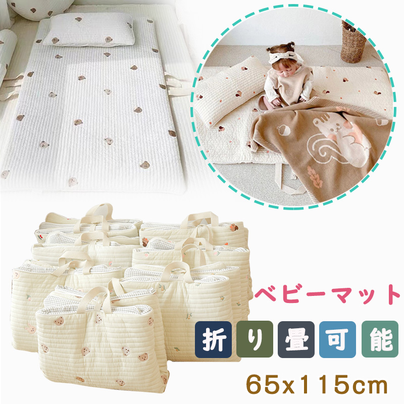 プレイマット お昼寝マット ナップマット ベビーマット 折り畳み 65115 持ち運び 赤ちゃん敷マット オムツ替えマット 長方形 ごろ寝アート 刺繍 北欧風 子供部屋 子供 かわいい 癒
