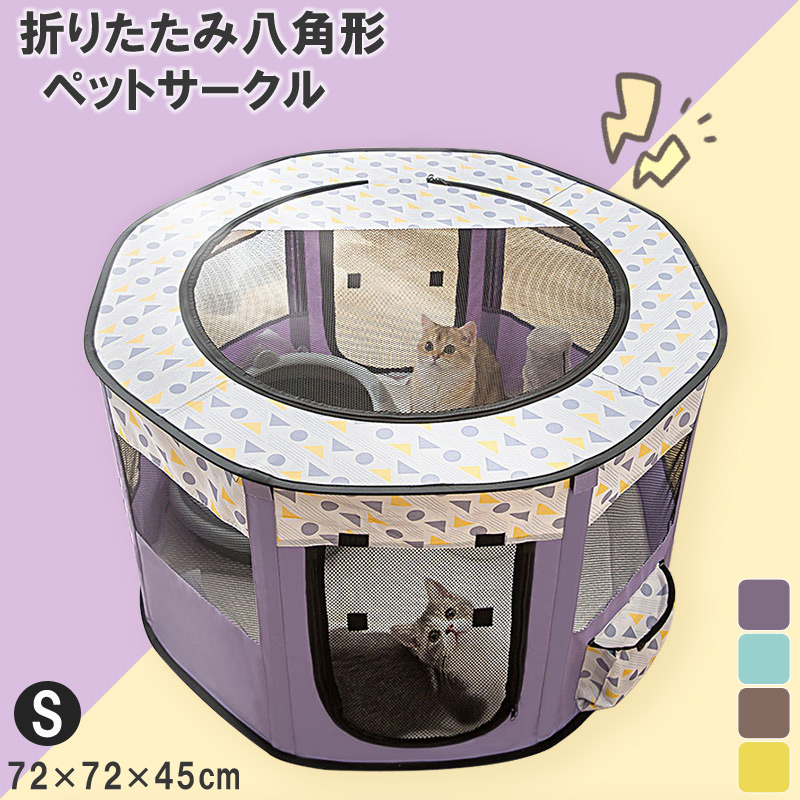 折りたたみ ペットサークル ペットグッズ ネコ 猫 ペット サークル 折り畳み 犬 ケージ 屋根付き Sサイズ メッシュサークル