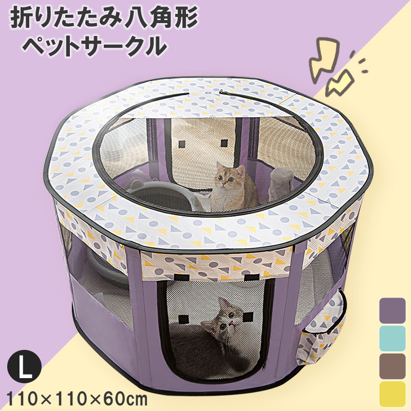 折りたたみ ペットサークル ペットグッズ ネコ 猫 ペット サークル 折り畳み 犬 ケージ 屋根付き Lサイズ メッシュサークル
