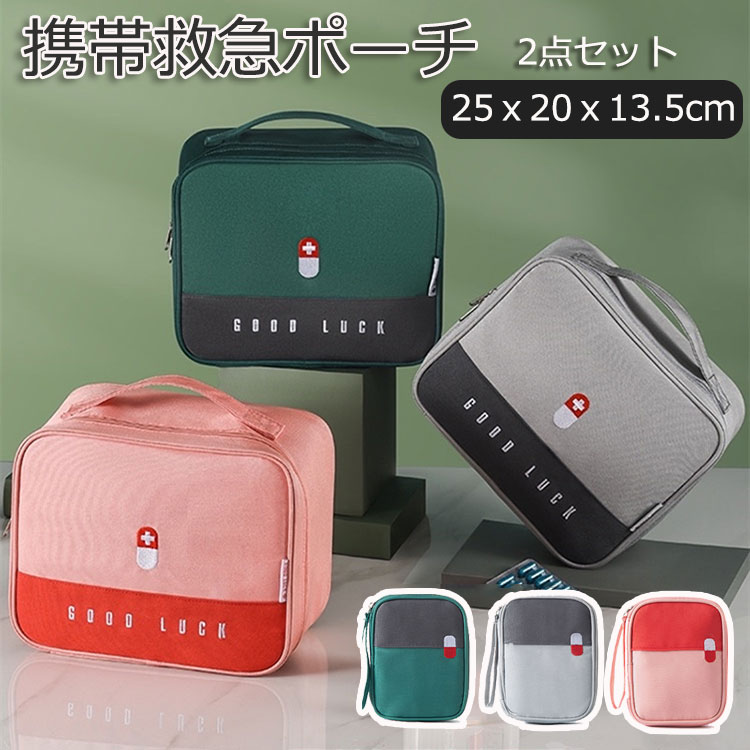 仕分けに便利なポケット付き 薬ポーチ 薬収納 薬入れ 布製 2点セット 携帯用 大容量 家庭用収納バッグ 学生用 外出用 出張用携帯便利バッグセット