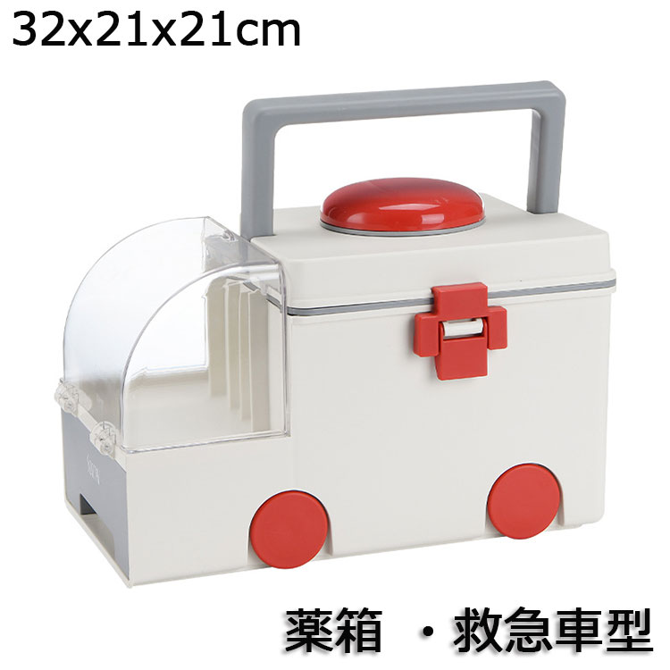 救急ボックス クルマ型 薬箱 かわいい 応急処置キット キャビネット 収納ボックス 大型 二層 薬ケース付 携帯便利 プラスチック