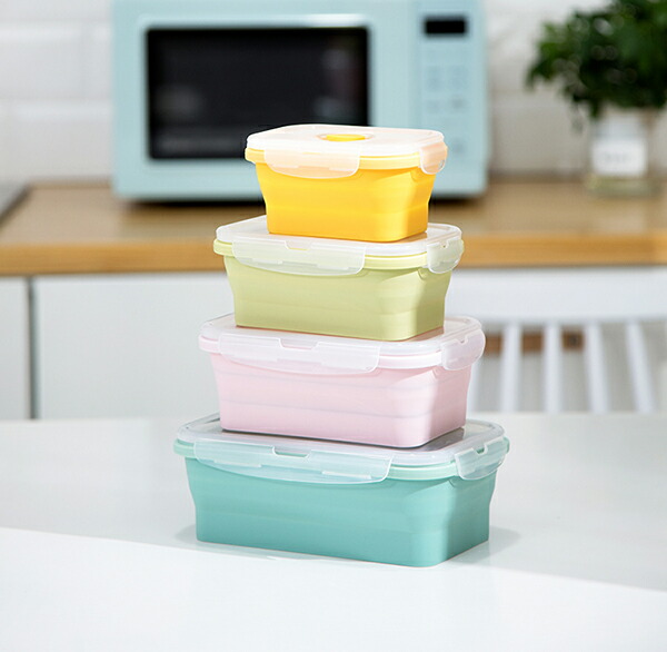 折りたたみ弁当箱 2点セット 耐熱 蓋付き ピクニック用 収納用 キッチン 食事用 弁当箱 4サイズ選択 5色選択