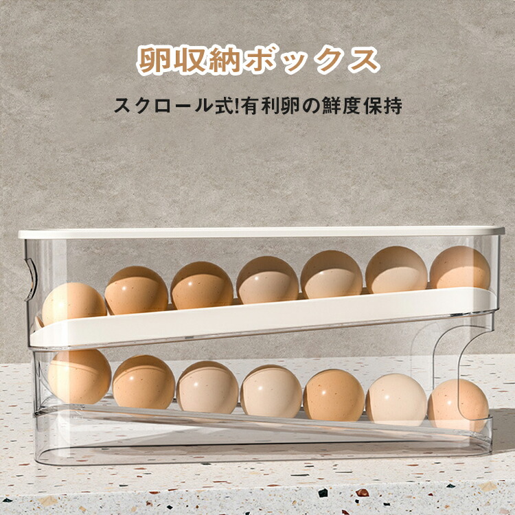 1個 2個 冷蔵庫用 卵収納ボックス スライド式 自動ローリング 卵ケース 卵 オーガナイザー たまご 収納ケース ボックス 収納ホルダー 取り出し便利 たまご収納