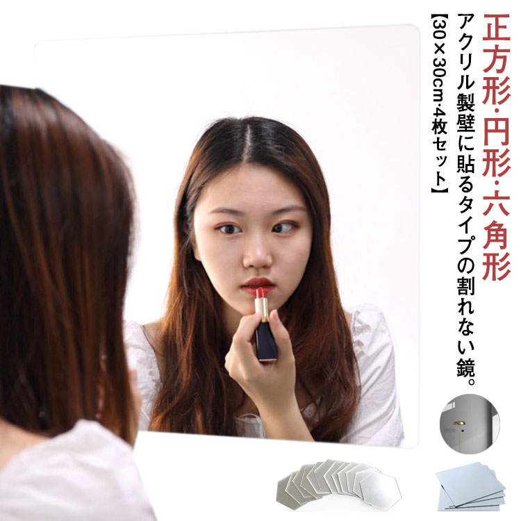 アクリル 鏡 ミラー 全身 姿見 割れない鏡 二次災害防止 ケガ防止 穴あけ不要 おしゃれ 4枚セット