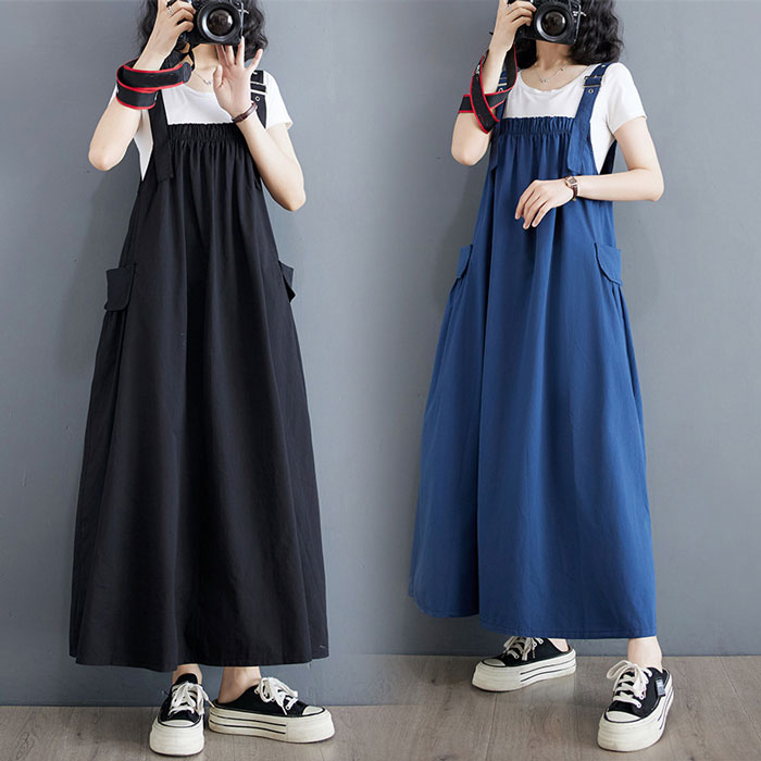 レディース 春 おしゃれ サスペンダースカート 無地シンプルロング丈 ワンピース会社OL 通勤 新作M L XL
