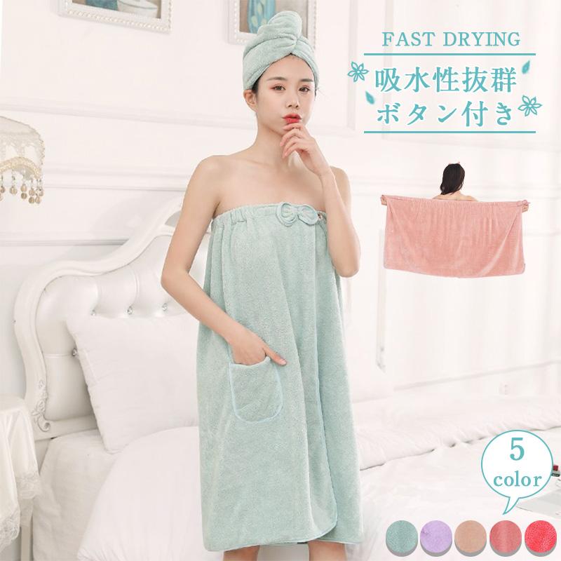 ラップタオル 大人用速乾 ボタン付き 巻きタオル おしゃれ スカートタオル バスローブ レディース 柔かい バスタイム プール 美容院