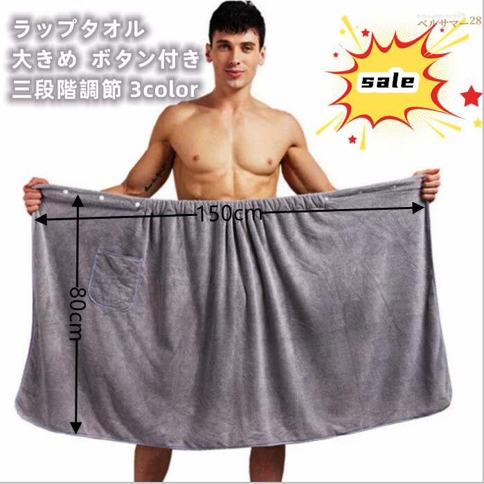 3色 ラップタオル マキタオル 男の子 女の子 バスタオル 巻きタオル メンズ レディース 大きめ サイズ 大判 落ちない グレー ネイビー 腰巻 中学生 高校生 プレゼント お祝い