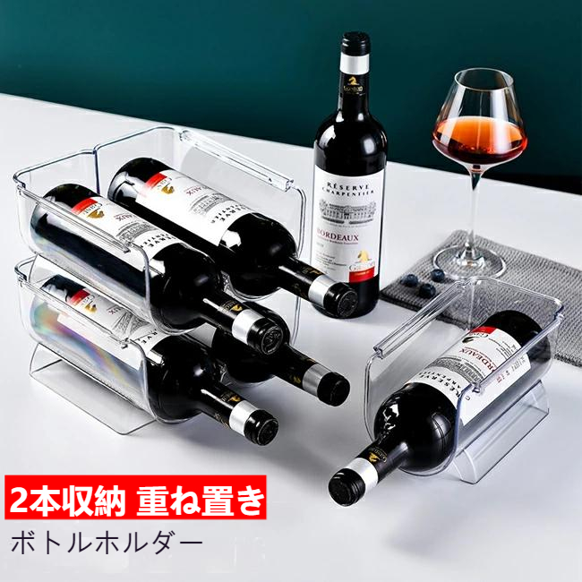 ボトルホルダー ワイン収納 2本収納 収納ラック 冷蔵庫 ビール 冷蔵庫内 収納 収納ケース缶ストッカー ワイン 缶ビール ホルダー 水筒ドリンクホルダー クリア ペットボトル ラック 缶ホルダー キ