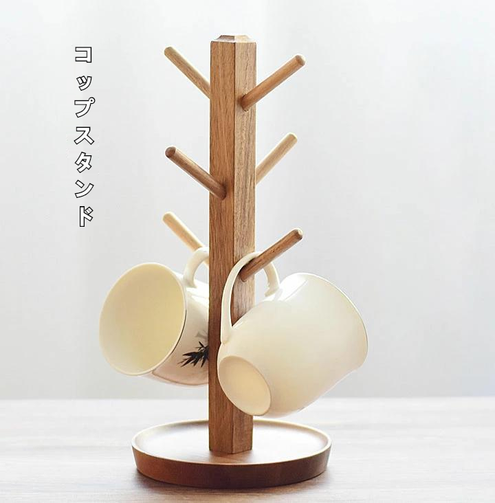 コップスタンド グラススタンド コップ水切り 木製マグカップツリー コップ収納 おしやれ 省スペース キッチン収納用 6個掛け グラス乾燥用 滑り止め付き c-shouna-7302-gg