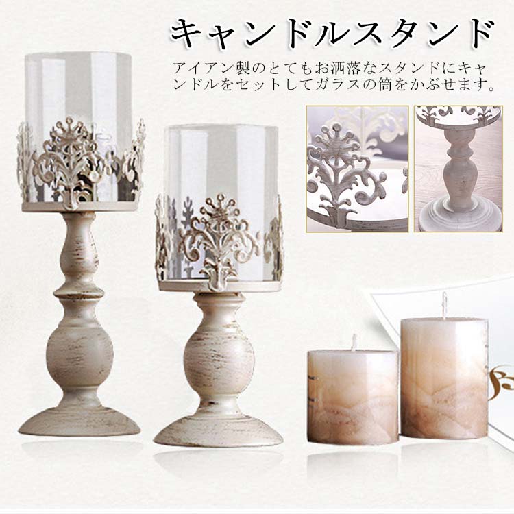 キャンドルスタンド アンティーク風 ろうそく立て キャンドルホルダー ガラス アイアン シャビーおしゃれ かわいいキャンドルライト サイズ 蝋燭立て お香 灯り キャンドルスタンド
