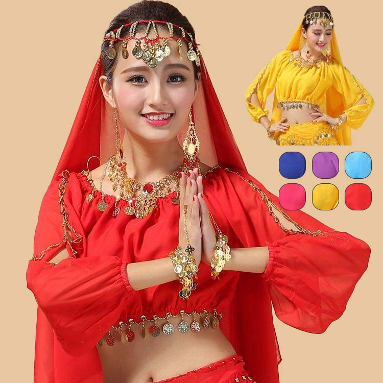 ベリーダンス コスチューム パフォーマンス ウェア 練習着 トップス インドのダンス コスチューム ランタン 半袖 ベリーダンス トップス
