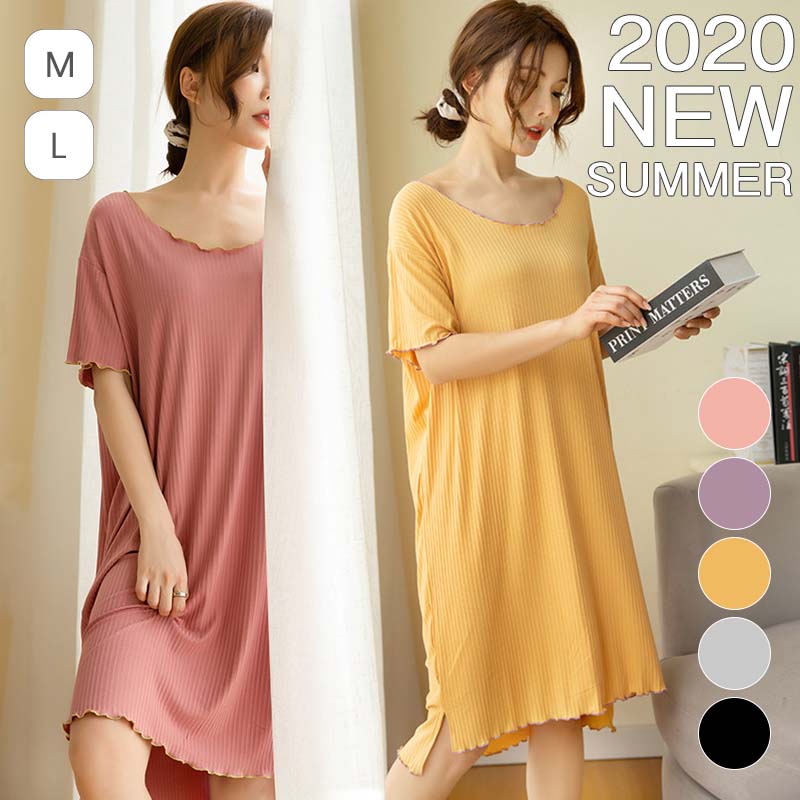 ナイトウエア レディース パジャマ 夏 ルームワンピース 半袖 綿 ルームウェア ワンピパジャマ レディース 夏用パジャマ 部屋着 涼しい 大人用 可愛い 無地 寝巻き