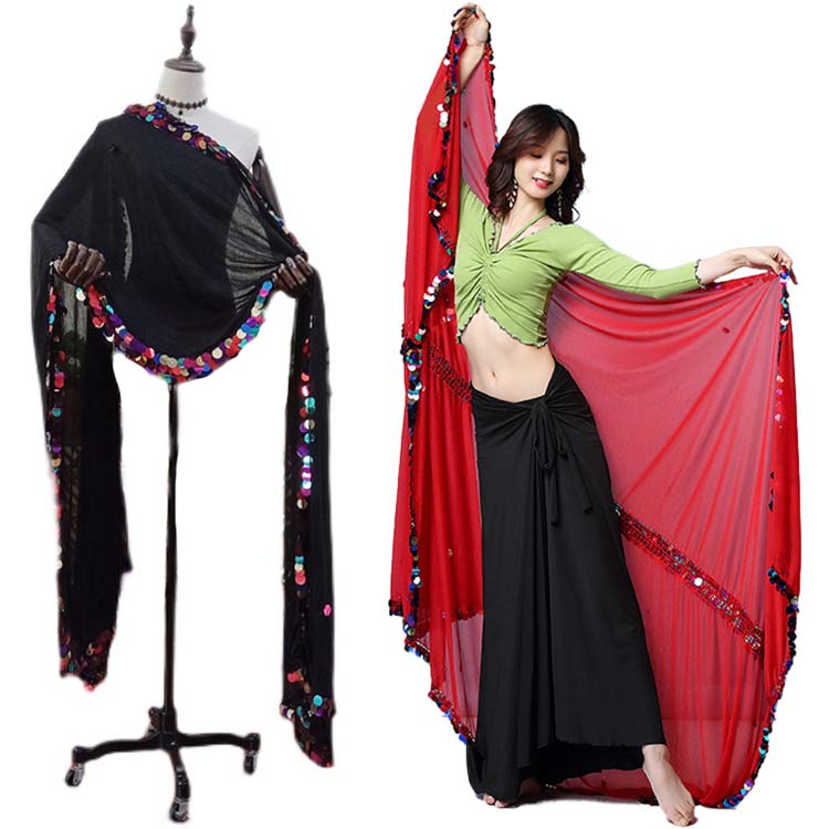 スパンコール ベール スカーフ 舞台ステージ道具 社交ダンスグッズ ロング ベリーダンス衣装 黒赤2色 紗 ラメ入 大判サイズ
