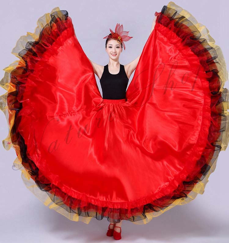 レッスン着 広がる スカート ロング丈 ダンス モダンドレス スカート 裾幅360°540°720° 社交ダンス 裾フリル フラメンコ ダンス スカート ワルツ 大きい裾 タンゴ 民族ダンス