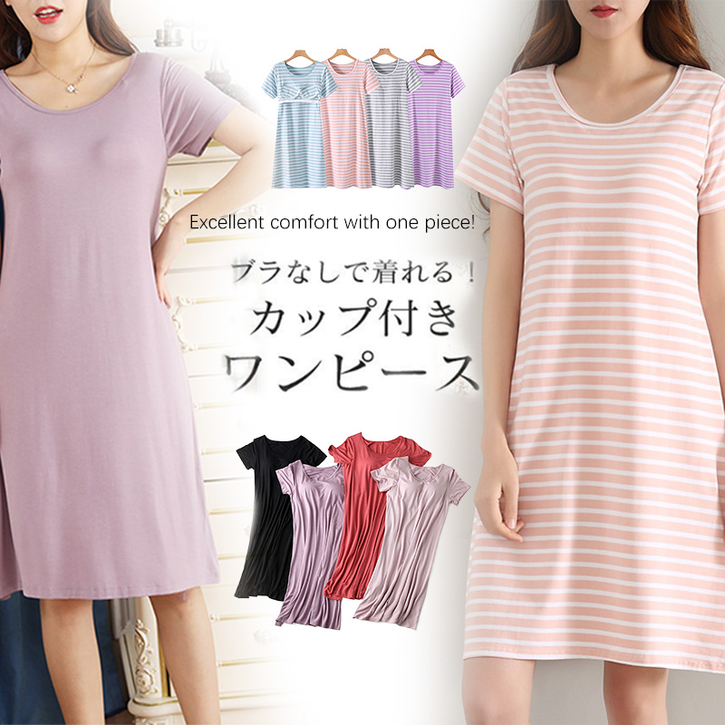 カップ付き ワンピース ロング リラックス 半袖 ゆったり ルームウェア レディース ブラトップ 部屋着
