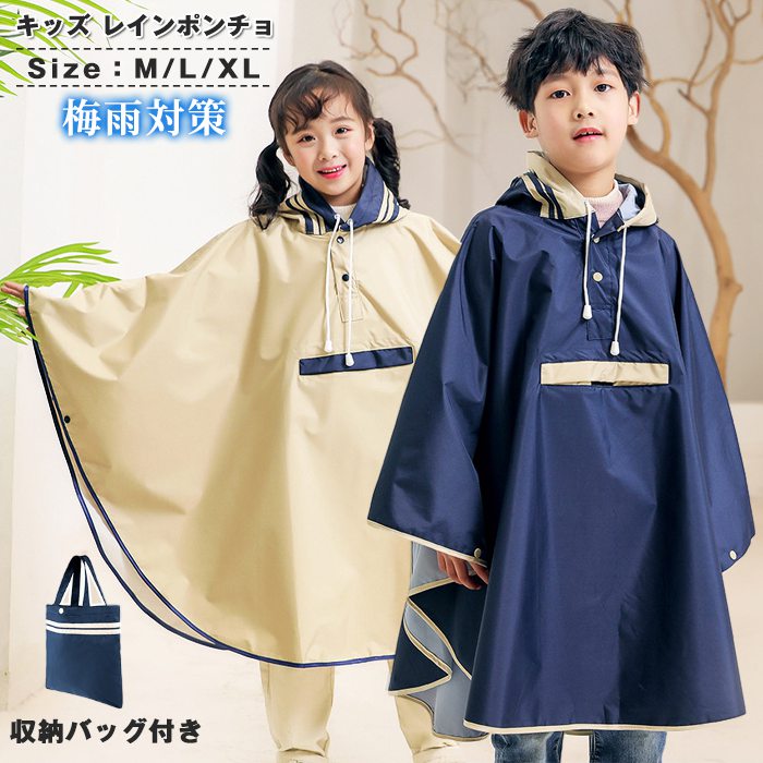レインポンチョ キッズ レインコート 女の子 男の子 レインウェア 子供 子ども 通園 通学 防水 幼稚園 かわいい 遠足 梅雨対策 収納バッグ付き