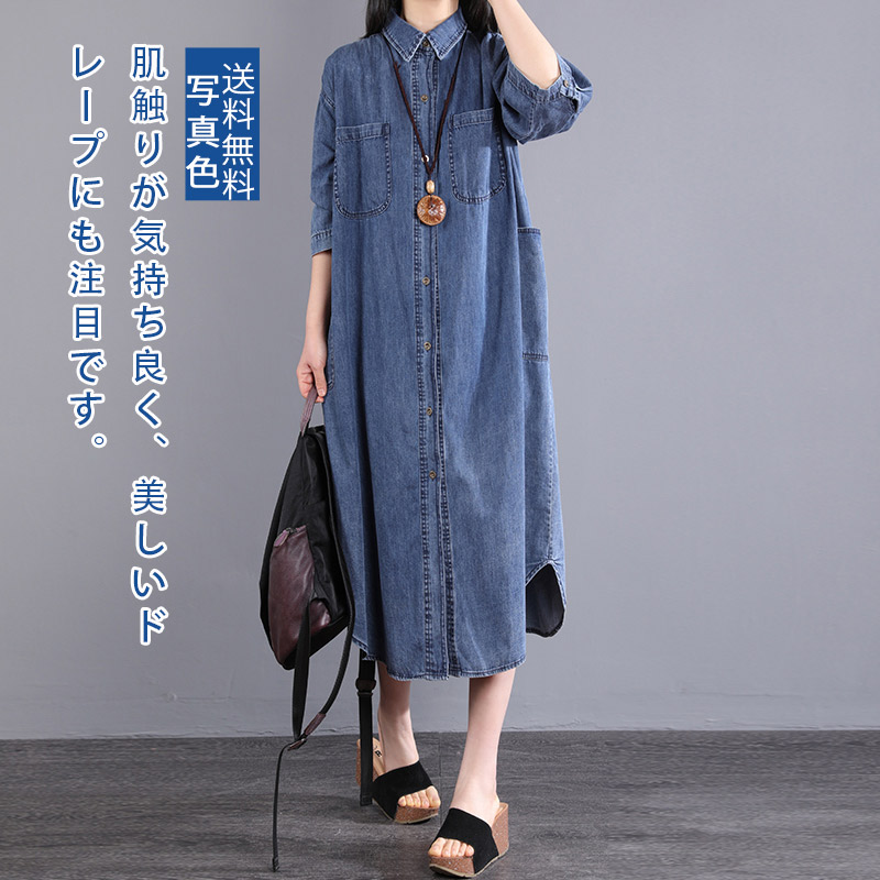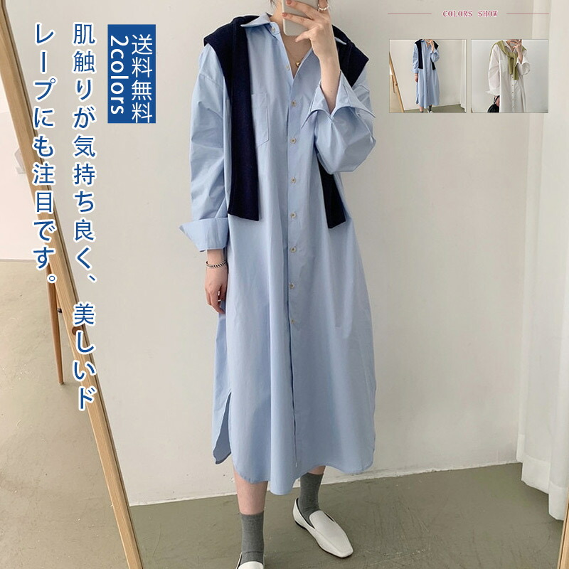 シャツ ワンピース 長袖 シャツワンピース ロング