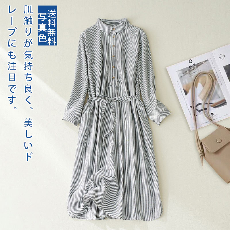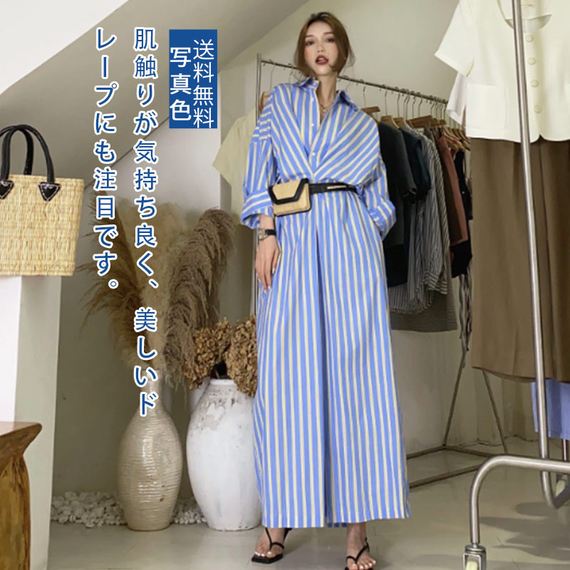 ストライプシャツロング丈ワンピース ロングシャツワンピース シャツワンピース 長袖シャツ ロングレディースファッション シャツワンピース