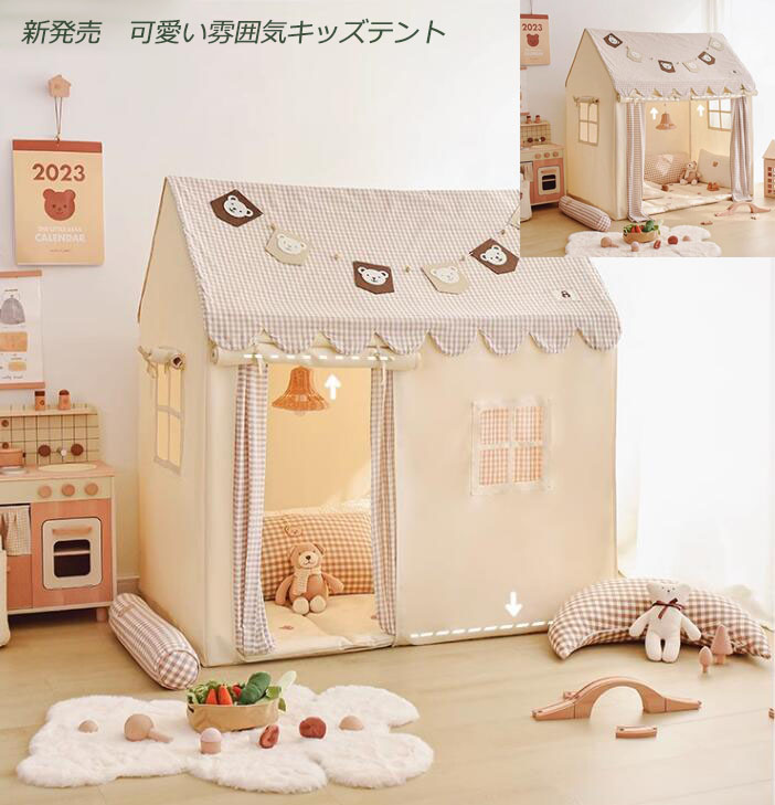 人気 睡眠テント ベージュ キッズテント 子供部屋 プレゼント 子供テント キッズ プレイテント 誕生日 秘密基地 組み立て簡単 室内室外 こどもの日 ブラケット 洗濯可