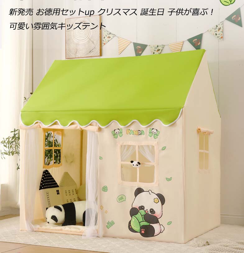 新発売 2点セット キッズテント 子供部屋 子供テント キッズ プレイテント 組み立て簡単 室内室外 持ちやすい 窓口付き 小屋+厚手フロアマット こどもの日 天然木ブラケット 洗濯可