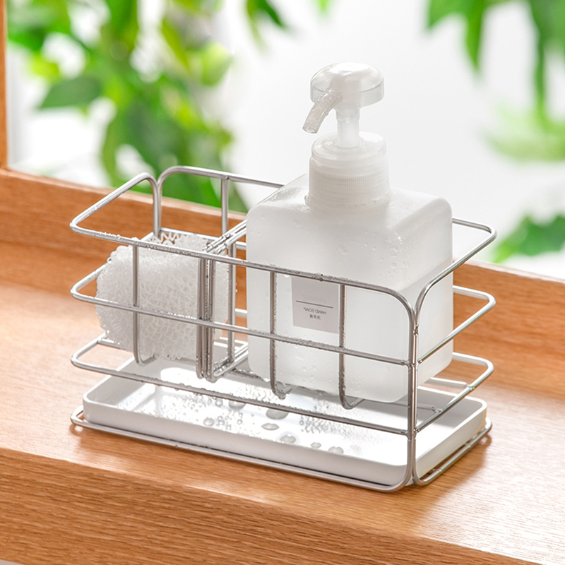 スポンジホルダー 吸盤式 トレイ付き 調節可能 ステンレス製 水切れ 乾燥キッチン用品 食器 調理器具 キッチン整理用品 水切りラック