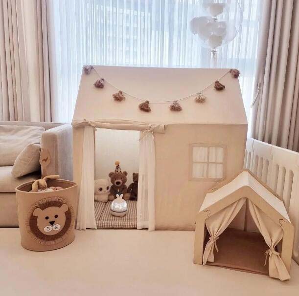 プレイテント2点セット キッズテント 子供部屋 プレゼント 子供テント キッズ プレイテント カンバス 室内室外 小屋+厚手フロアマット こどもの日 ブラケット カバー丸洗い可