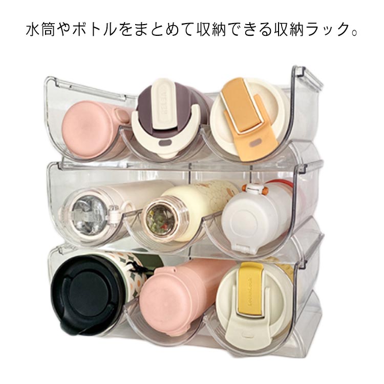 ボトル 水筒 収納 ラック 2段 6個収納 ボトルスタンド ジャグボトル 透明 北欧 シンプル おしゃれ インテリア 新生活 積み重ね収納可能 雑貨 防塵 整理用品