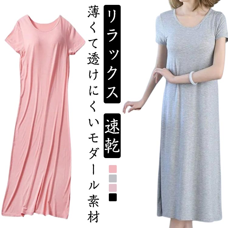 カップ付き ワンピース レディース 半袖ワンピ ミモレワンピース ミモレ丈 インナー スウェット ルームウェア部屋着 シンプル 無地