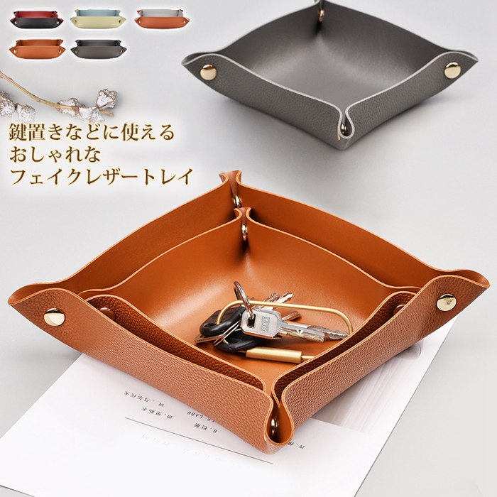 鍵置きなどに使えるおしゃれな小物入れトレイ レザートレイ 小物置き 卓上収納 小物入れ トレイ 皿 鍵置き 机上小物整理 小物収納 玄関 寝室 レザー調 合皮 アクセサリー 指輪 ピアス 鍵 腕時計