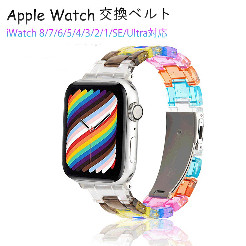 アップルウォッチ バンド 高級樹脂バンド 交換ベルト 全シリーズ対応 透明 虹色 クリア バンドストラップ 38 40 41 42 44 45 49 腕時