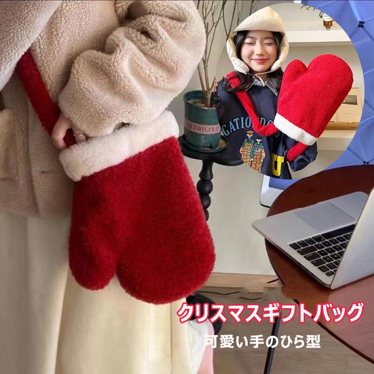 エコバッグ モコモコ クリスマス 元旦 レトロ 赤手袋バッグ ショルダートートバッグ スマホポーチ サンタ お菓子いれ 手提げバッグ ハンドバッグ