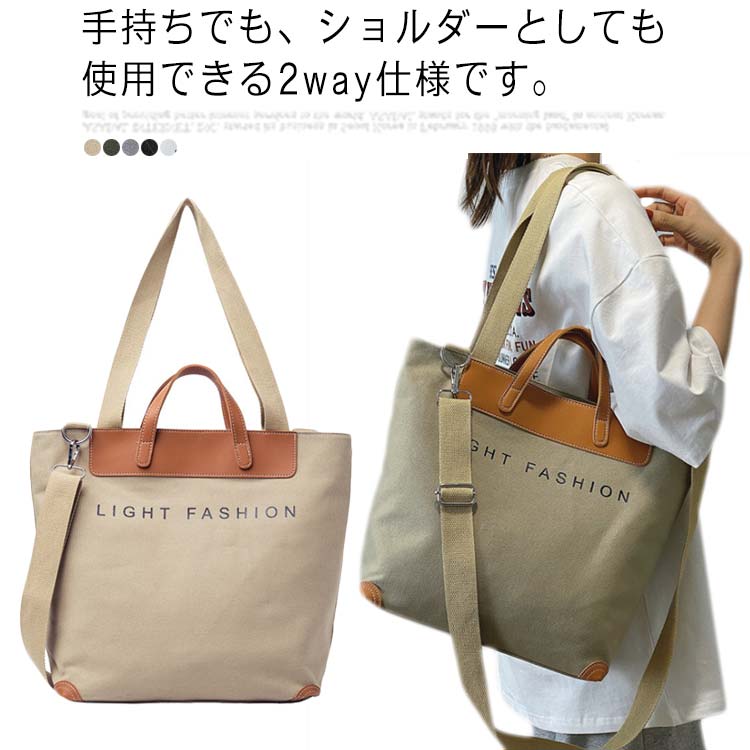 トートバッグ キャンバス 帆布 ショルダー 大容量 肩掛け 斜め掛け 2way 通勤 通学 軽量 マチ幅広 カジュアル