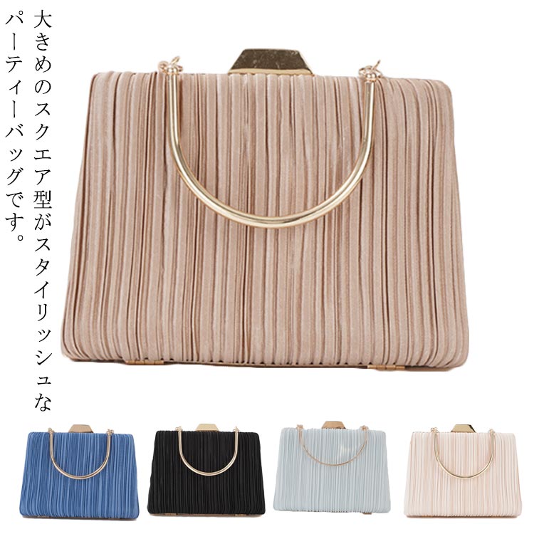 パーティーバッグ スクエア型 プリーツ フォーマルバッグ 結婚式 バッグ 大きめ 大人 きれいめバッグ 小物 ブランド雑貨 バッグ レディースバッグ パーティーバッグ