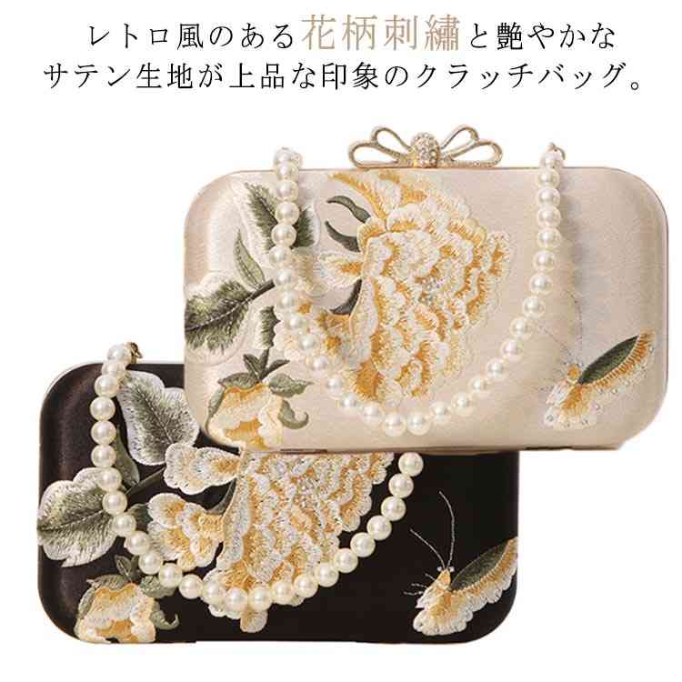 クラッチバッグ パール 手持ち 3way ショルダーバッグ サテンバッグ 刺繡入り 上品 高級感バッグ 小物 ブランド雑貨 バッグ レディースバッグ パーティーバッグ