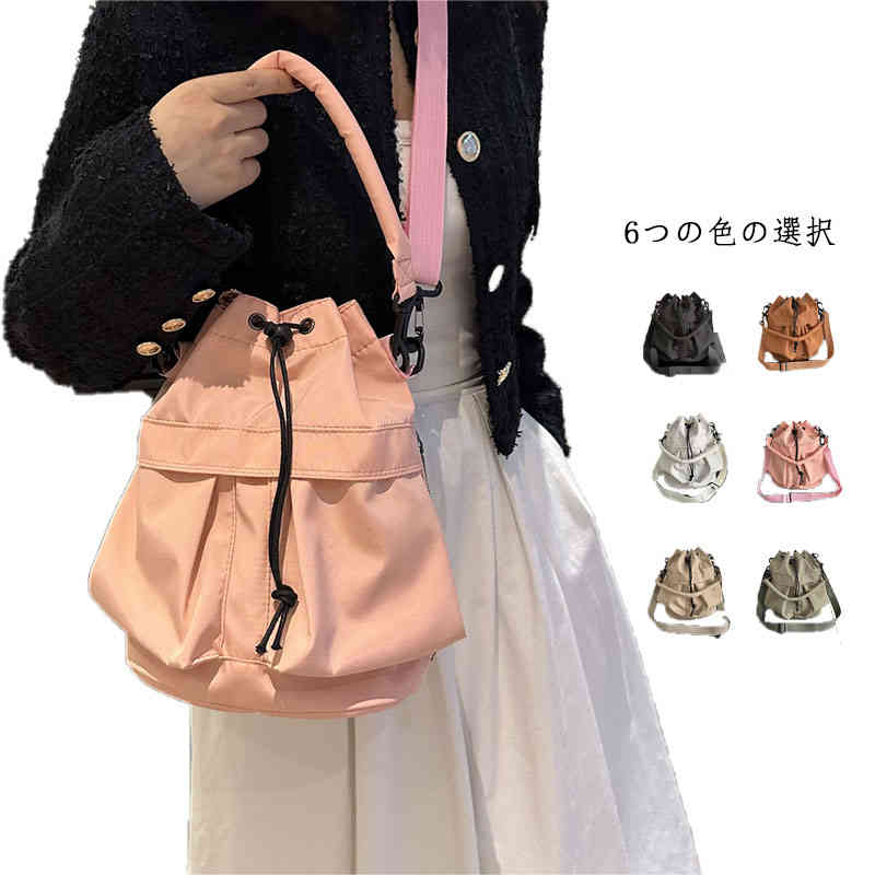 2way ショルダーバッグ 巾着 ショルダー ナイロン トート 軽量 大容量 ハンドバッグ 斜めかけ 肩掛けバッグ