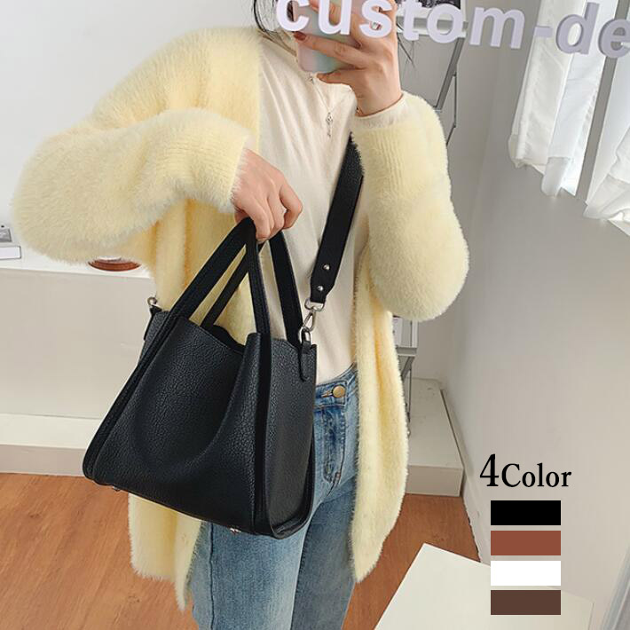 ハンドバッグ ショルダーバッグ レディース 2 大容量 大人 レザー パック 斜めがけ ファスナー付き シンプル レザーバッグ 大きめ ショルダー