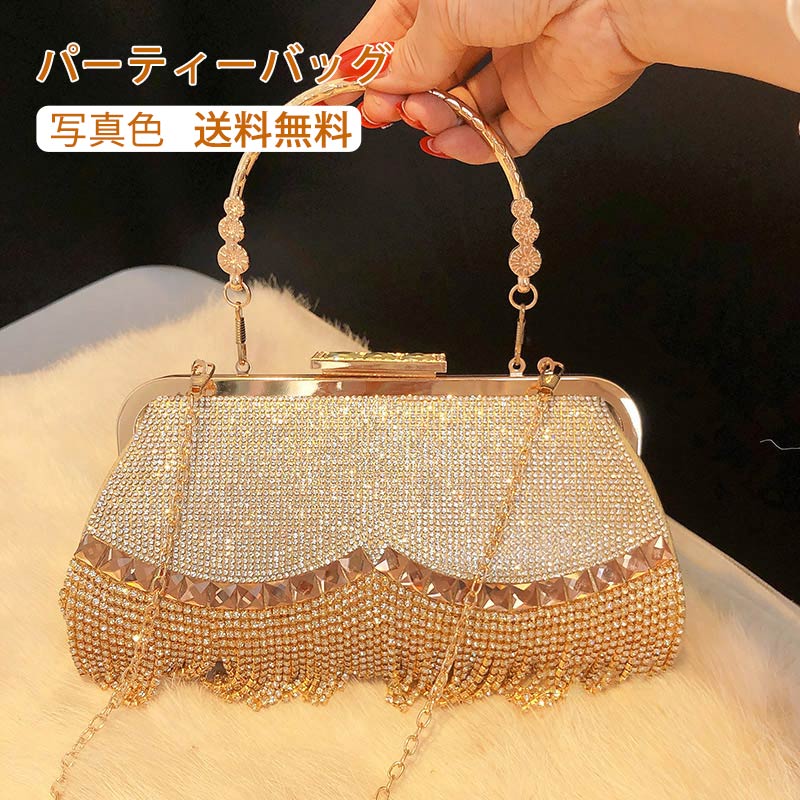 クラッチバッグ 結婚式 バッグ パーティーバッグ キラキラ タッセル 二次会 披露宴 謝恩会 ショルダーバッグ パール ラインストーン