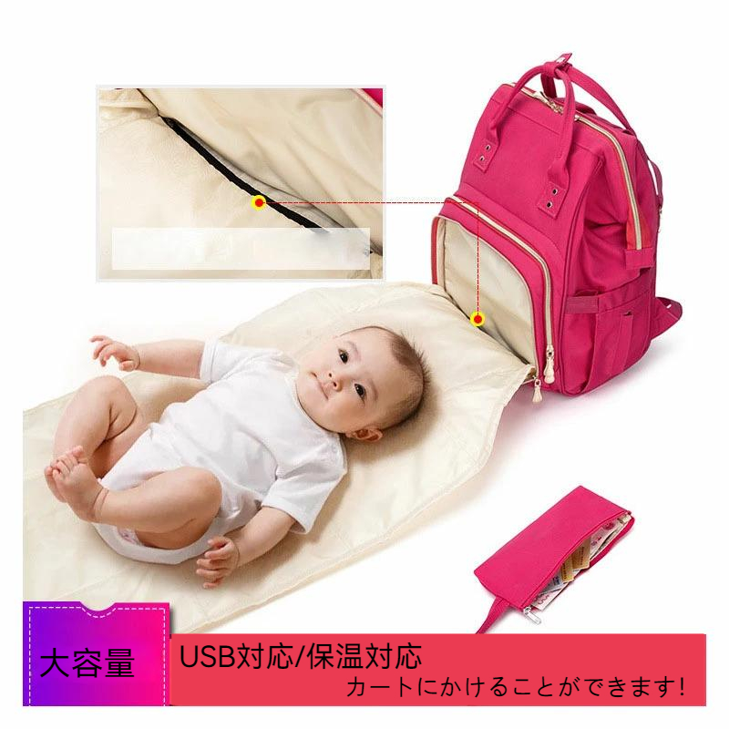 保温保冷 ママリュック 遮光蚊帳付き 旅行バッグ マザーズバッグ 大容量 軽量 防水 プレゼント リュック 折りたたみ マザーズリュック 丈夫 保温ポケット付 ママバッグ 2way USBポート搭載