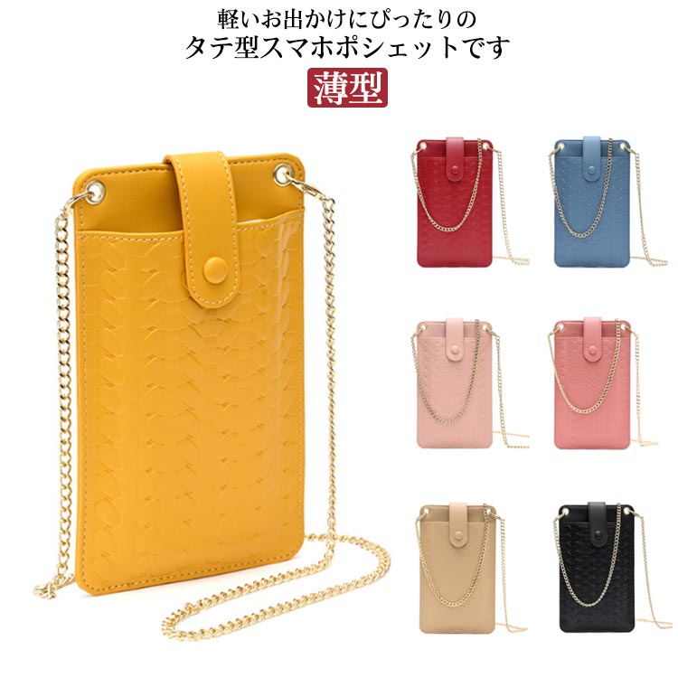 コンパクト ショルダーバッグ おしゃれ レディース 縦型 チェーン スマホポーチ スマホショルダー 薄型 携帯ポーチ レザー お財布 おしゃれ ポシェット シンプル 無地 かわいい 斜めがけ